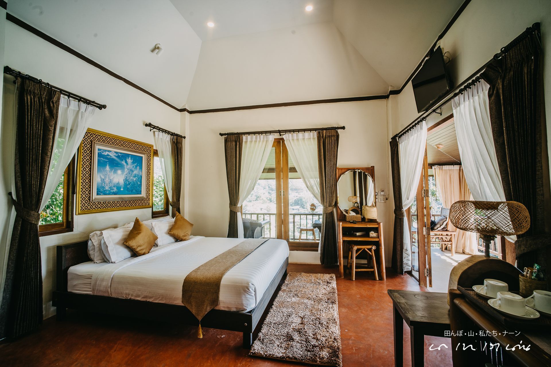 ห้องพัก Suite Villa ให้ความรู้สึกเป็นส่วนตัวด้วยที่พักในลักษณะวิลล่า บรรยากาศภายในตกแต่งด้วยเฟอร์นิเจอร์ไม้สวยงาม ใช้เครื่องประดับตกแต่งให้คงความเป็นไทยได้อย่างสวยงาม มีริมระเบียง